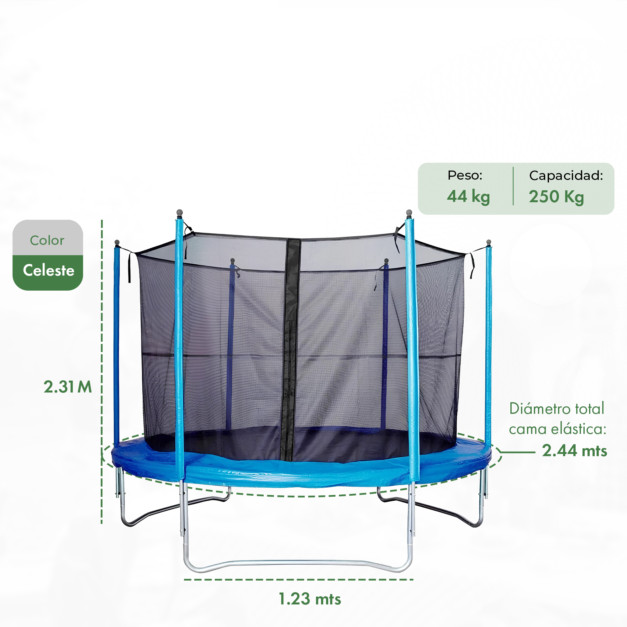 Altura del piso a la tela de salto: 68cm