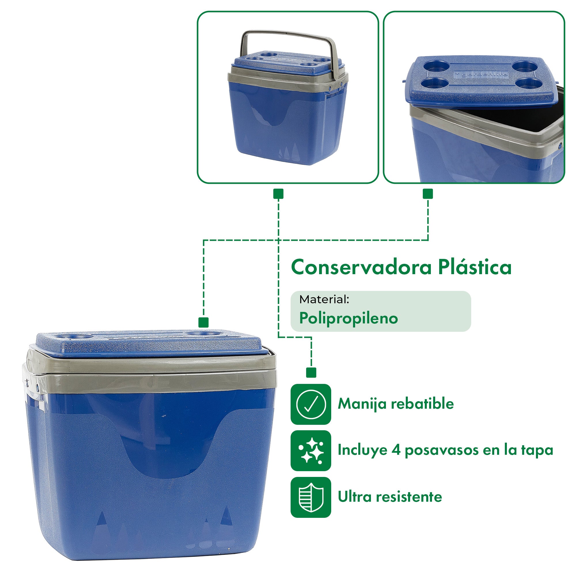 La Conservadora de 34 litros es la aliada ideal para tus encuentros y escapadas. Su gran capacidad y diseño robusto garantizan mantener tus bebidas y alimentos a la temperatura perfecta, brindándote frescura y practicidad en cada momento.