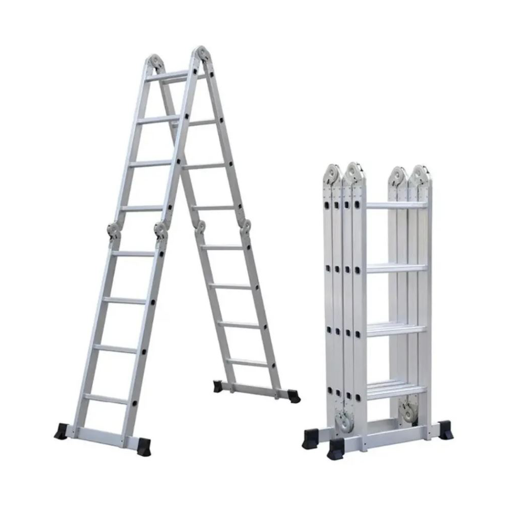 Potente y funcional, esta escalera articulada alcanza una altura total de 4,24 metros y permite múltiples configuraciones según la tarea: extensión, tijera o andamio. Con 16 escalones distribuidos en 4 tramos, ofrece máxima estabilidad gracias a su estructura de aluminio reforzado. Ideal para trabajos exigentes, tanto en el hogar como en entornos profesionales.