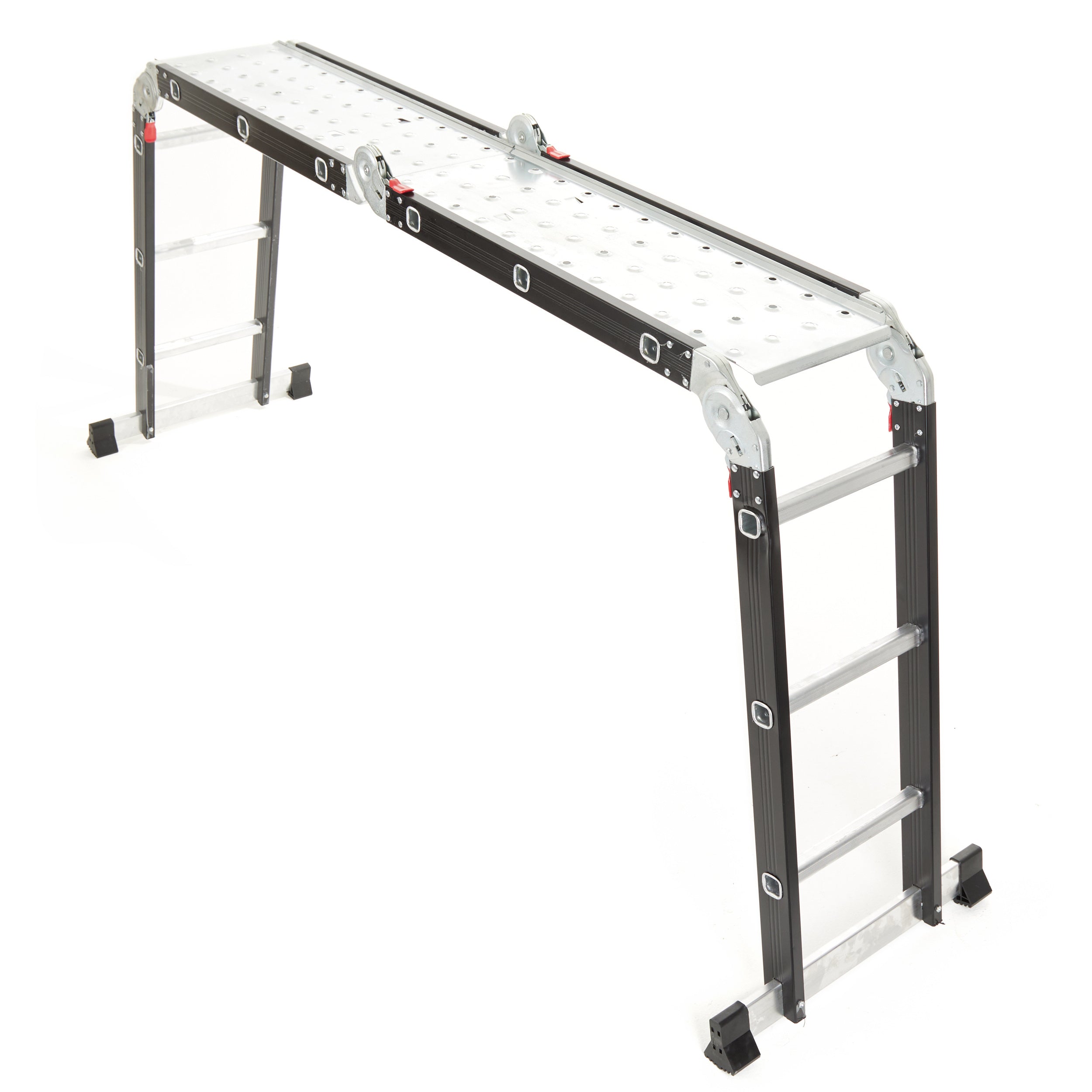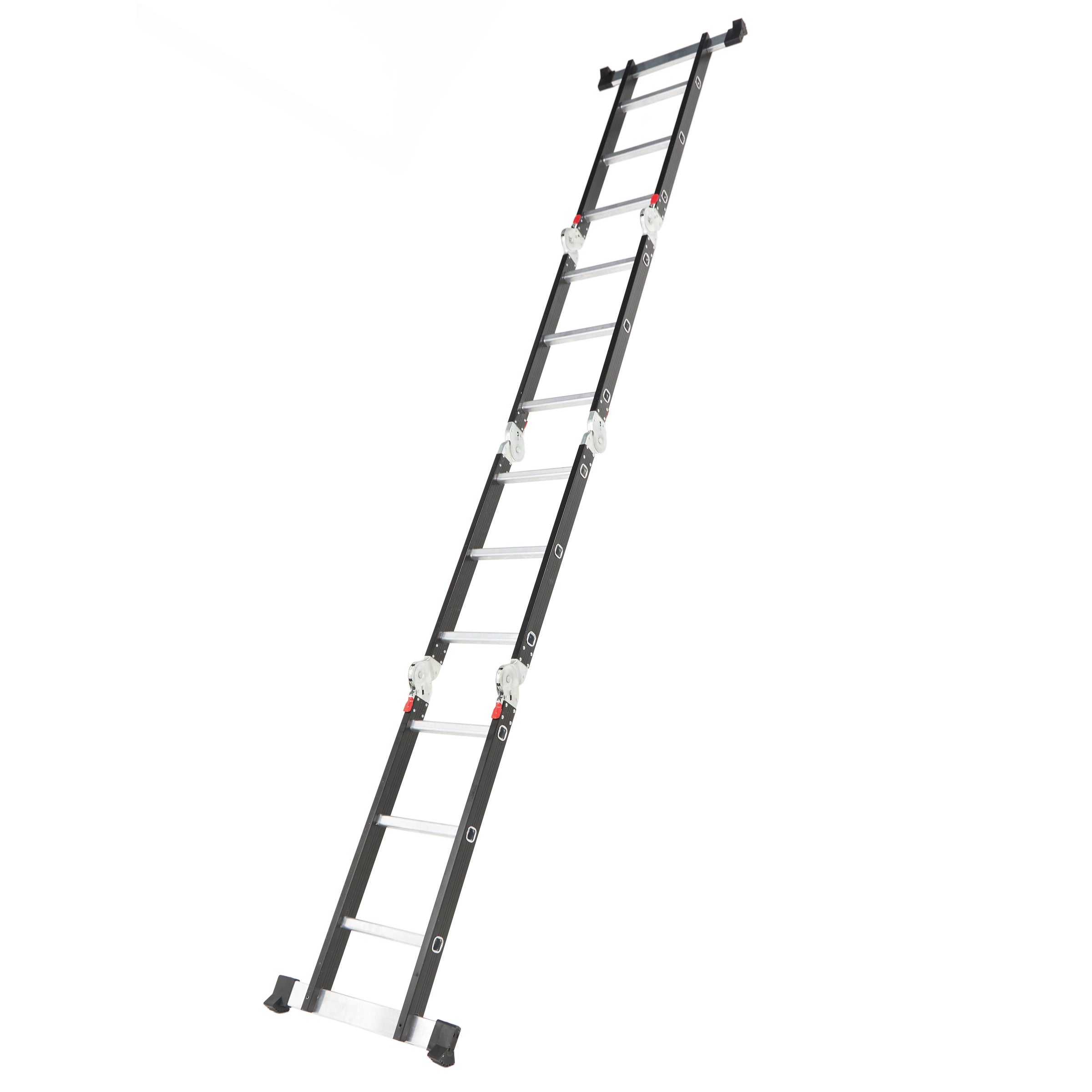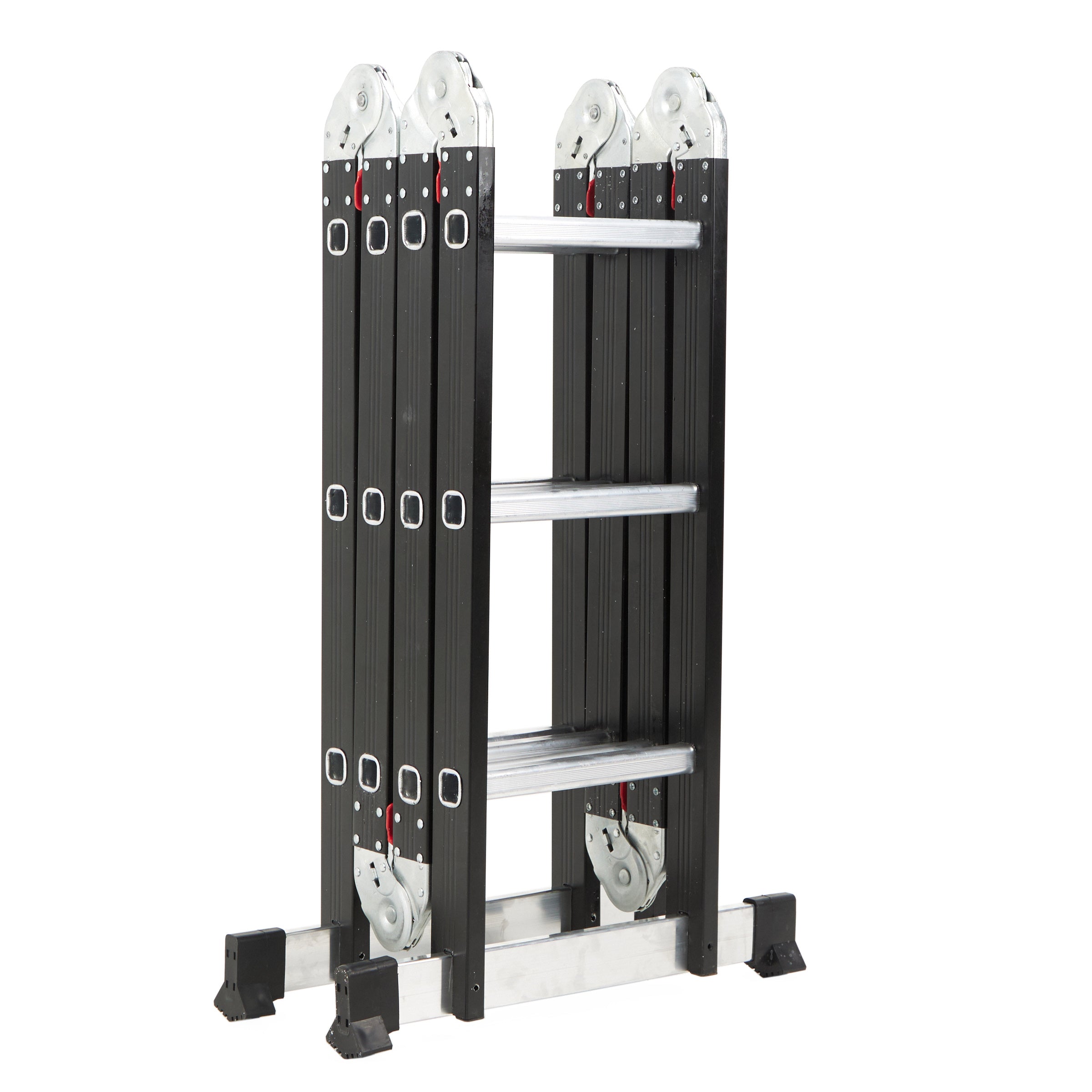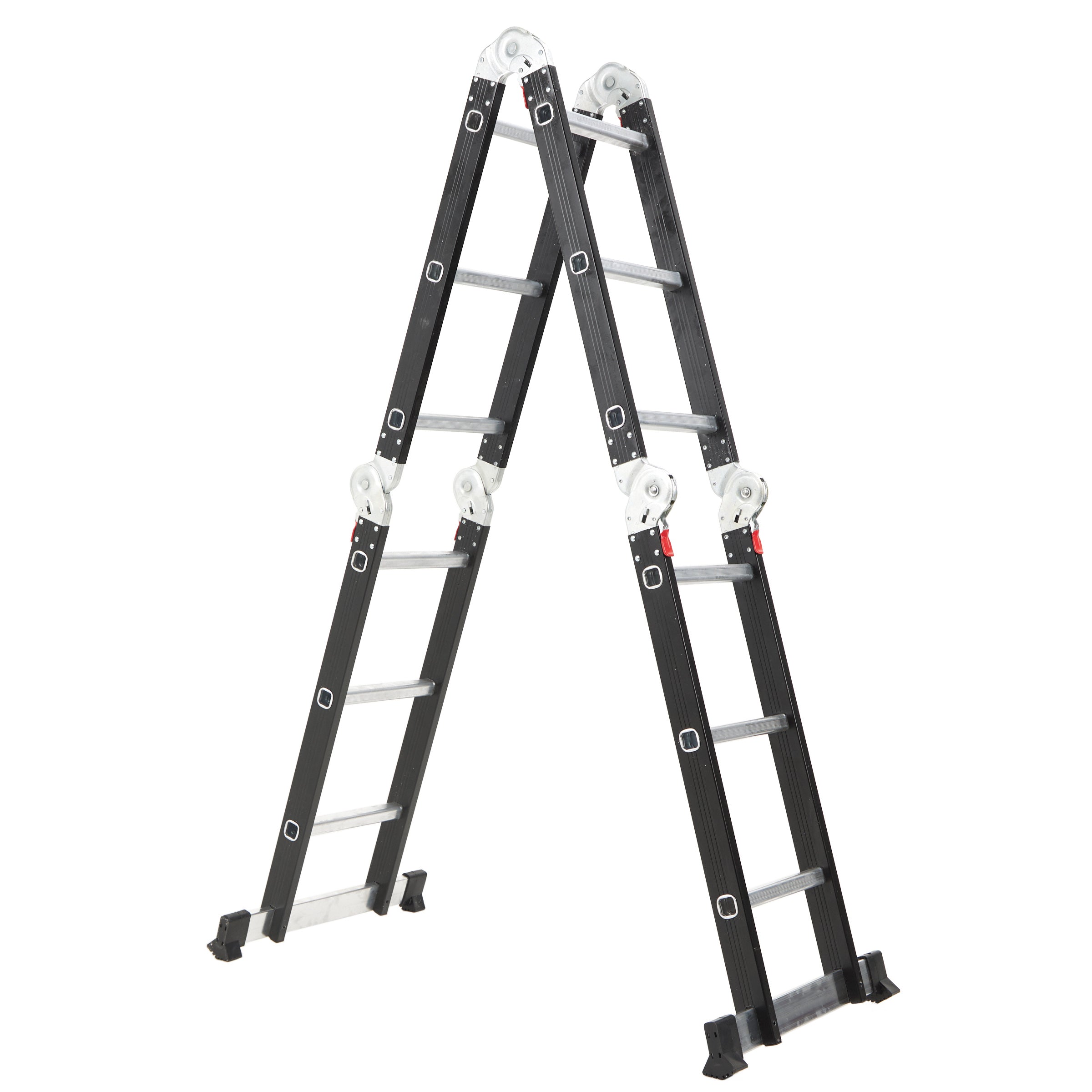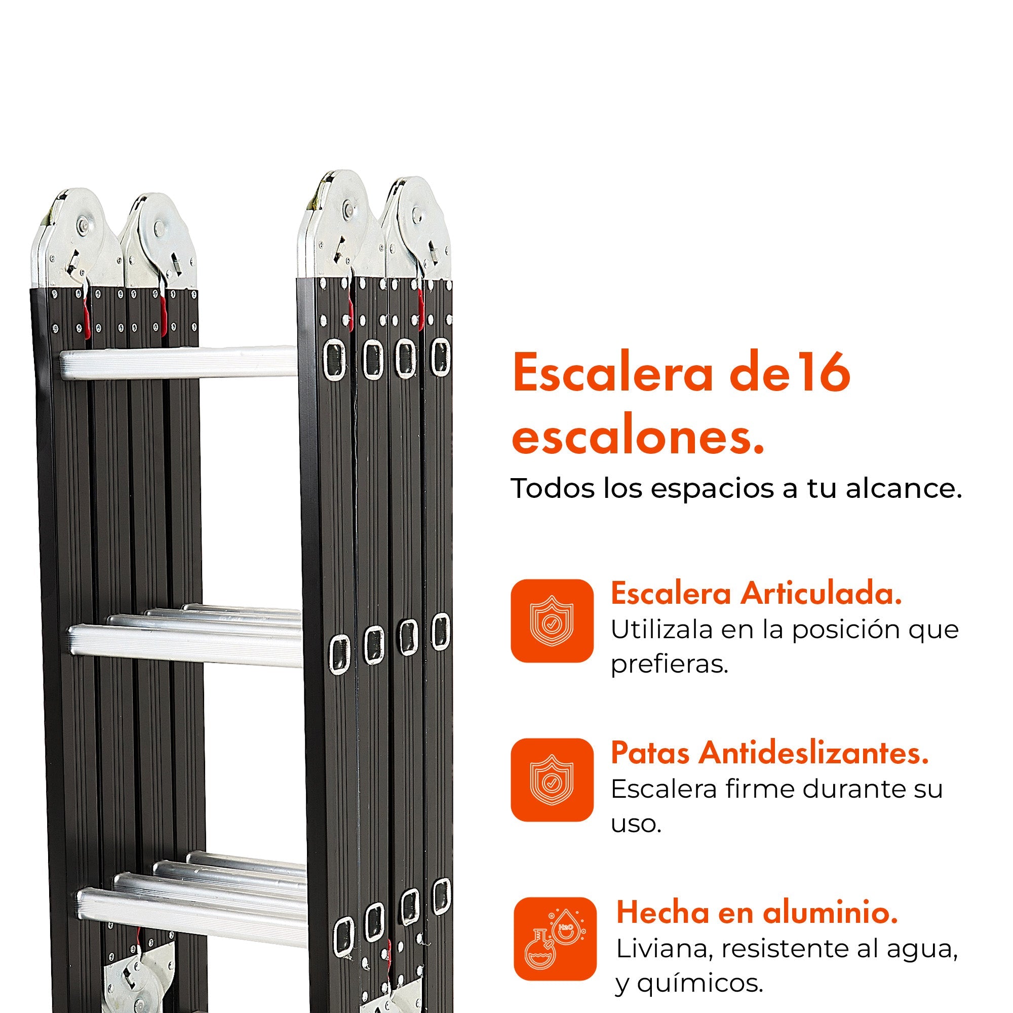 Liviana, fuerte y súper versátil. Esta escalera articulada de aluminio llega a los 3,50 mts y se adapta a múltiples posiciones: tijera, recta o andamio. Con 12 escalones antideslizantes y terminación en negro mate, es ideal para trabajos en casa o en obra. Seguridad y funcionalidad en una sola pieza.