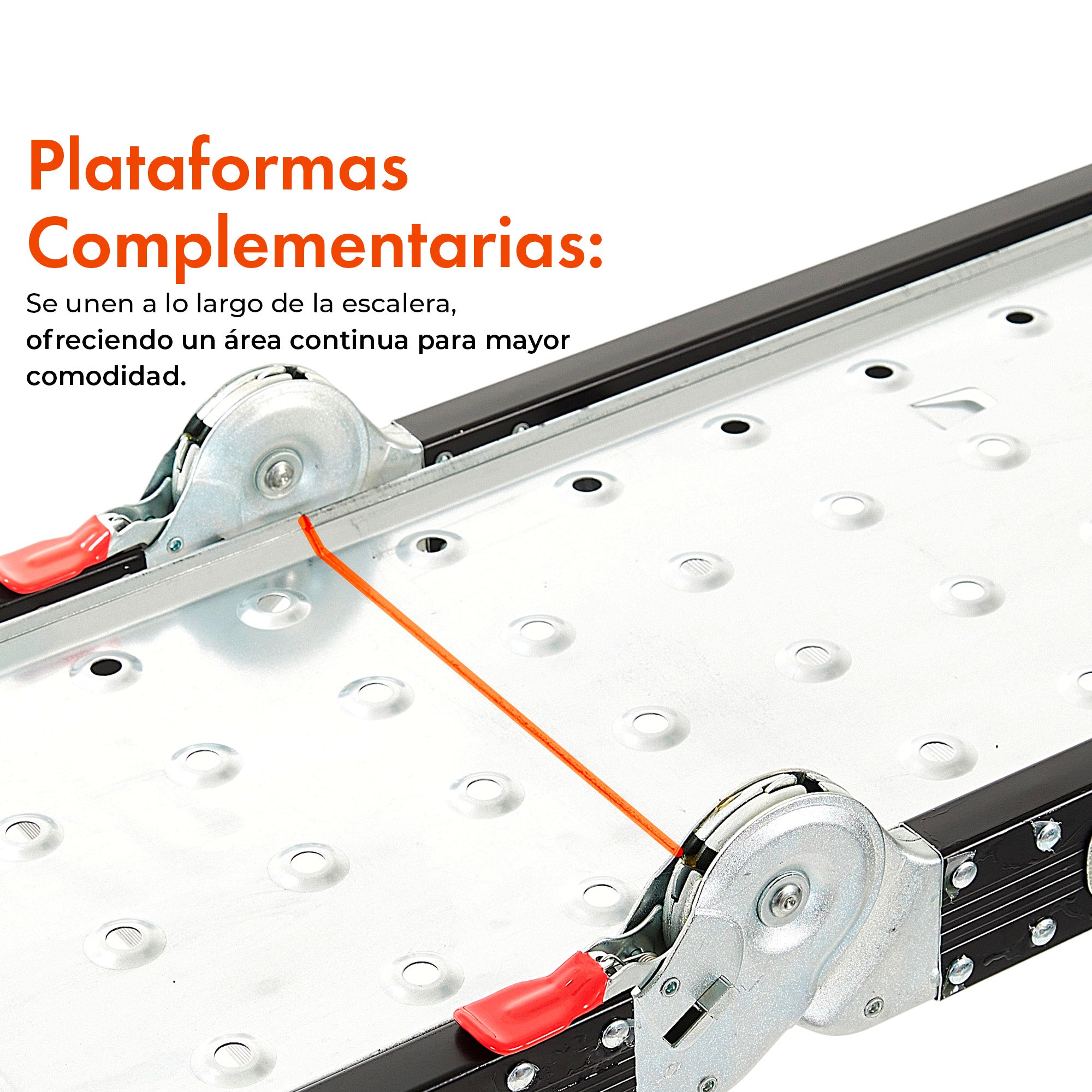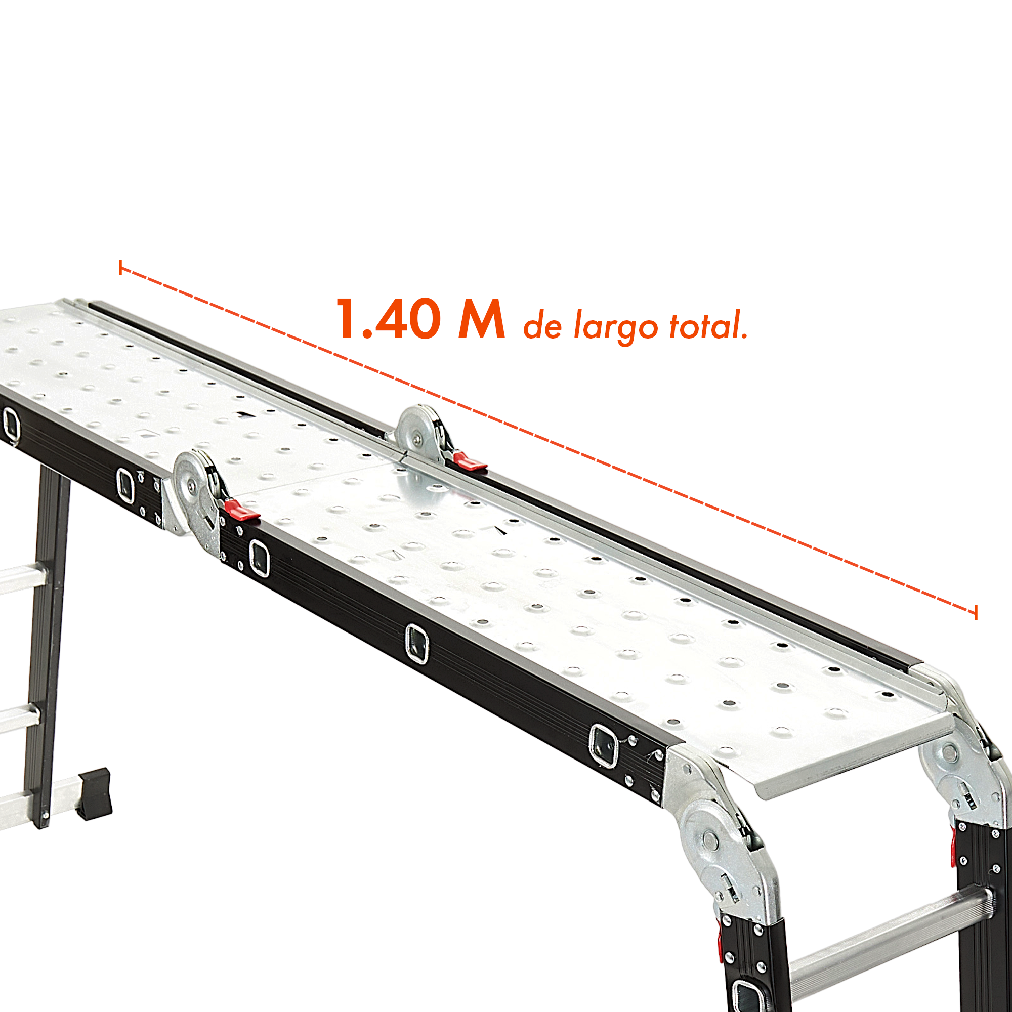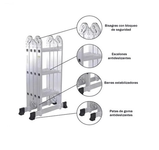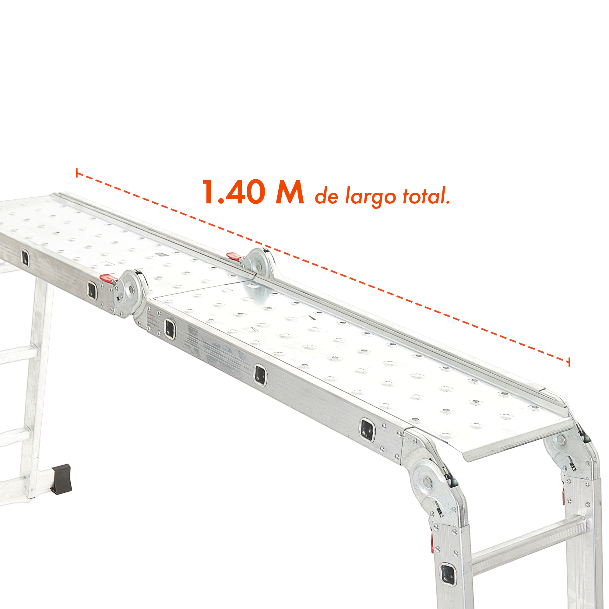 Versatilidad total para cualquier tarea. Con 16 escalones y plataforma incluida, esta escalera se transforma en andamio, tijera o recta según lo que necesites. Fabricada en aluminio resistente, es liviana, segura y fácil de transportar. Ideal para trabajos en altura, tareas del hogar o uso profesional.