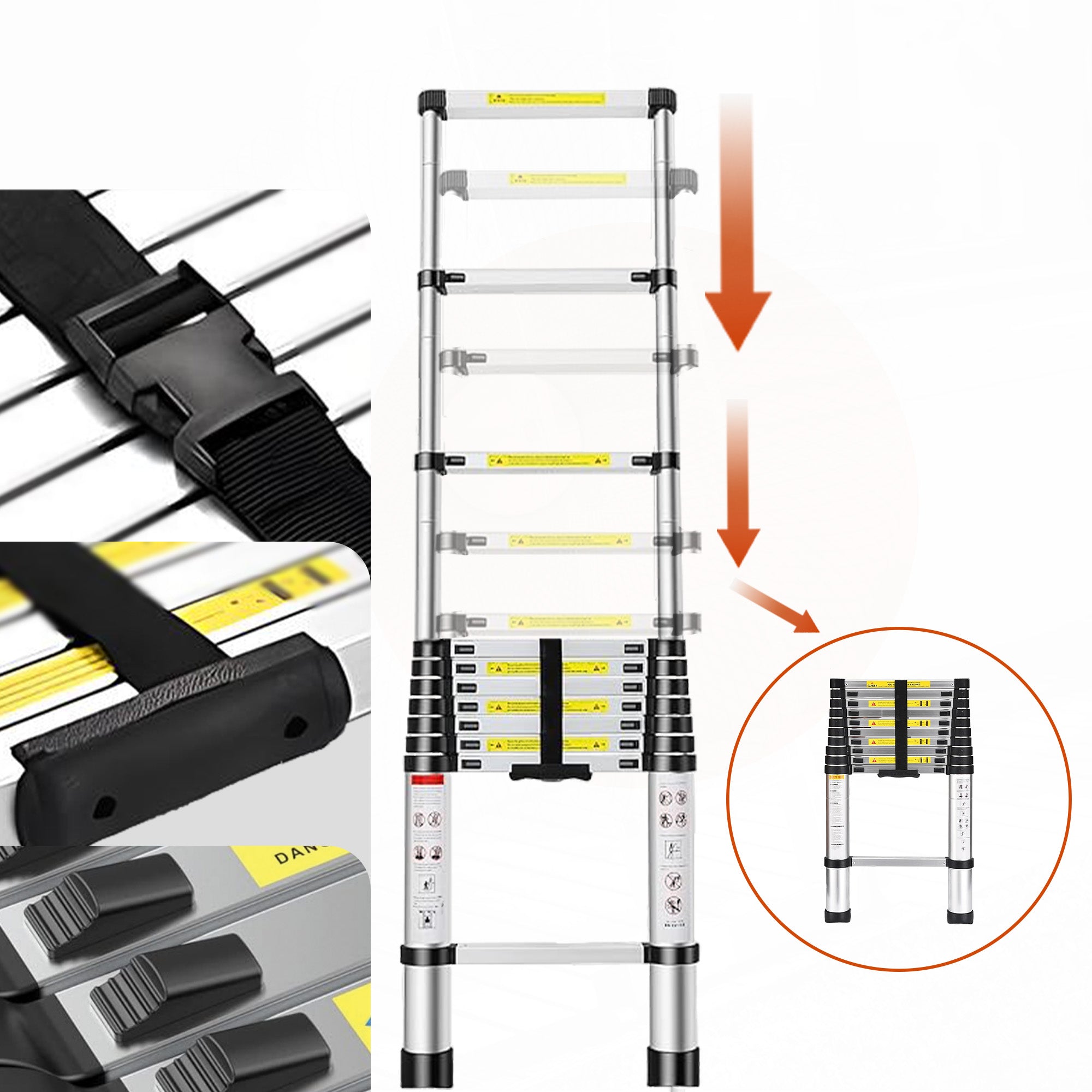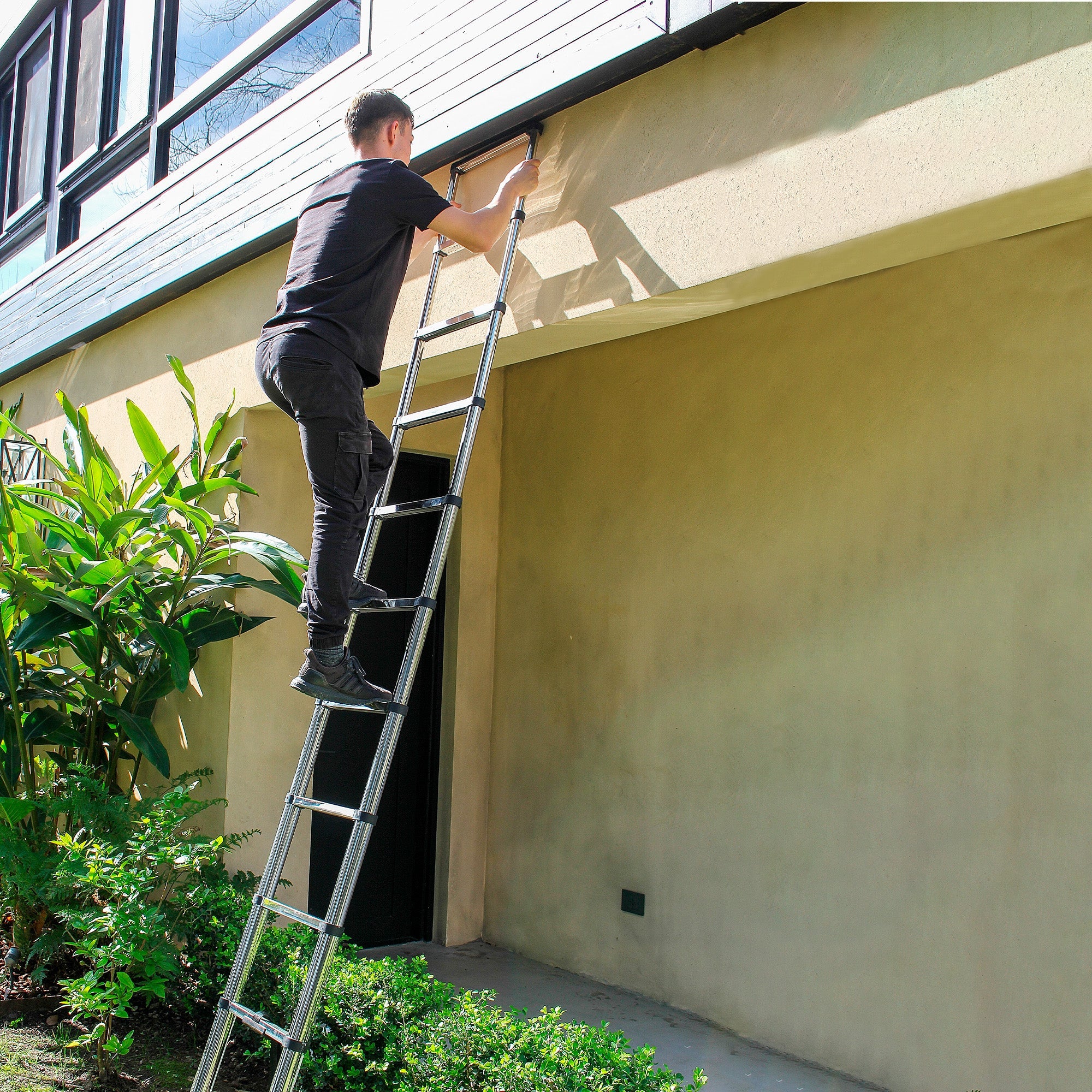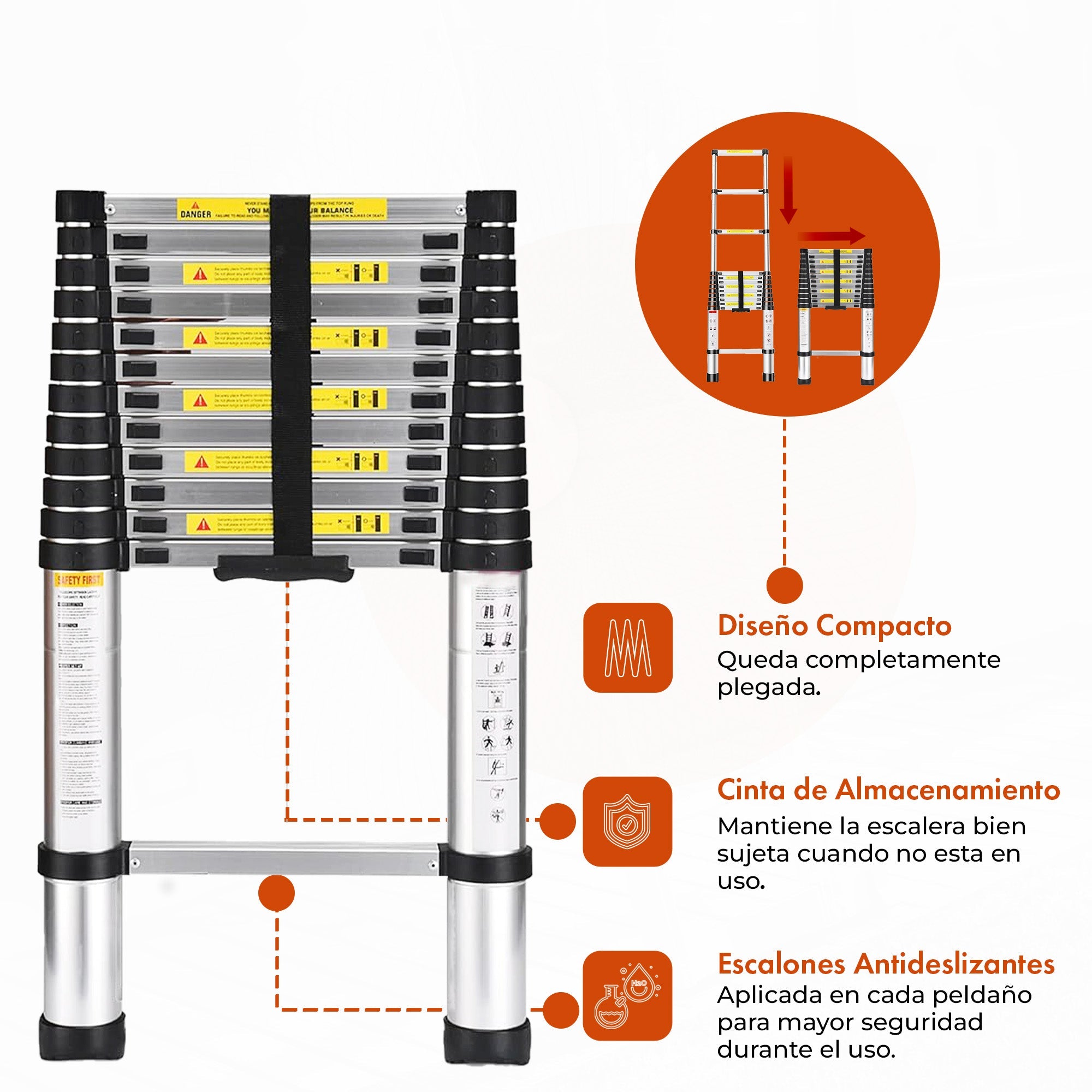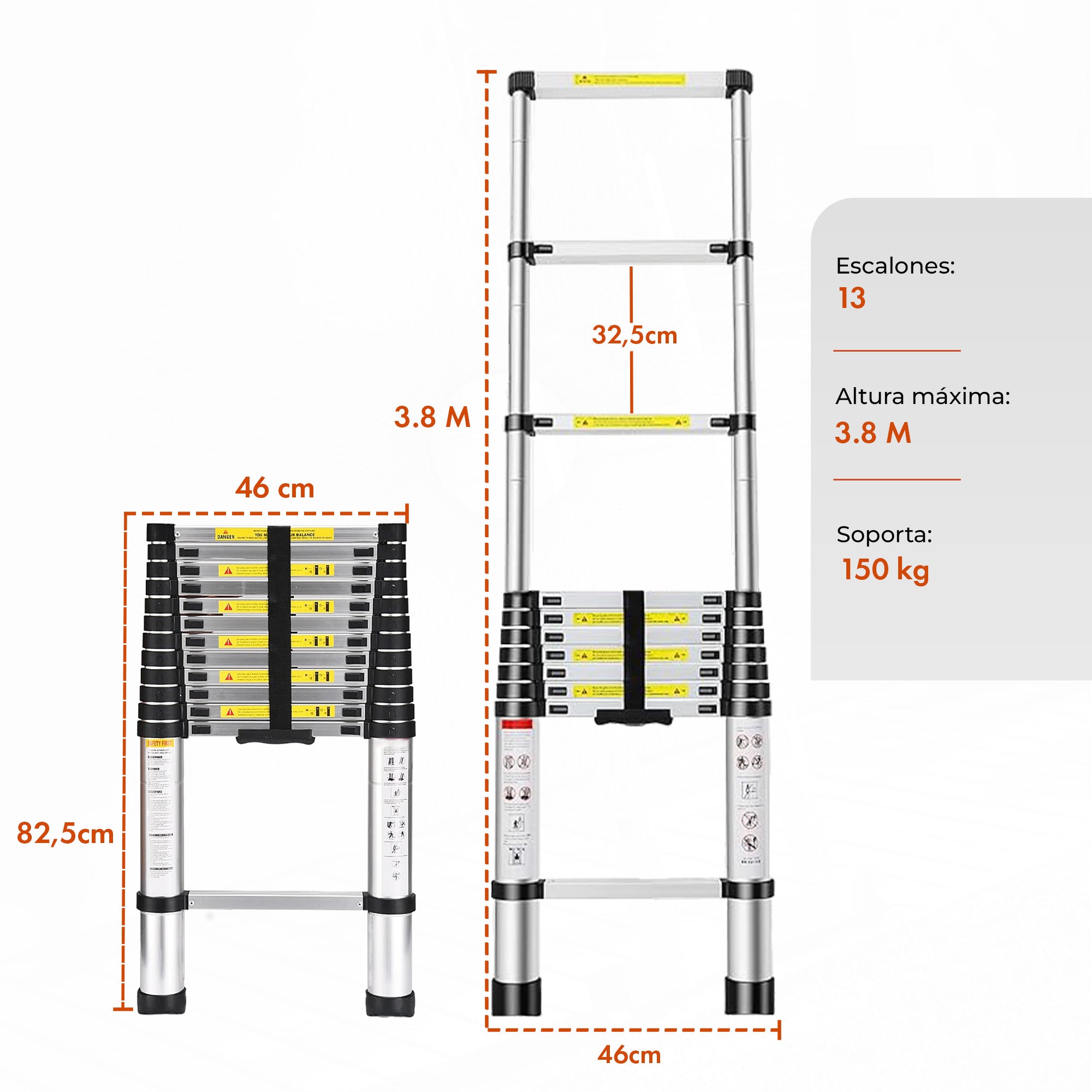 Diseñada para tareas exigentes dentro y fuera del hogar, esta escalera se extiende hasta 3,8 metros y se pliega en segundos. Robusta, compacta y fácil de transportar, es la aliada ideal para quienes buscan seguridad y practicidad en cada paso.