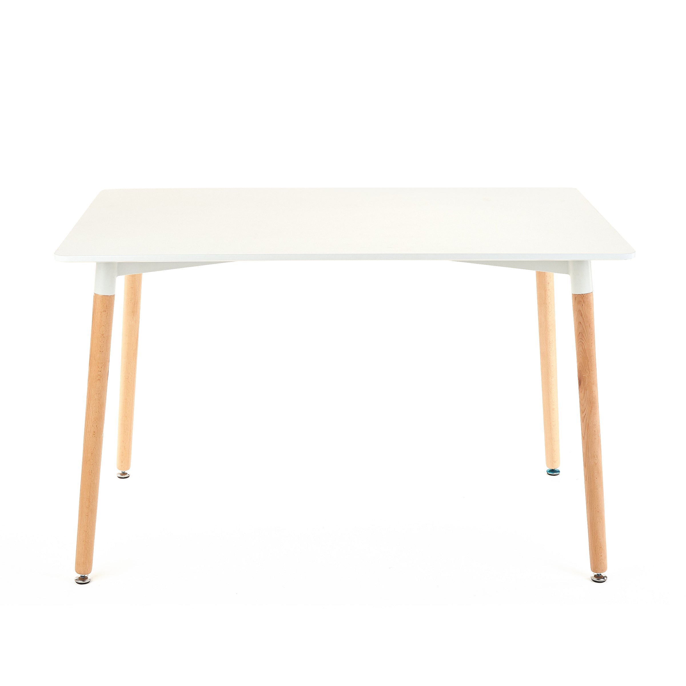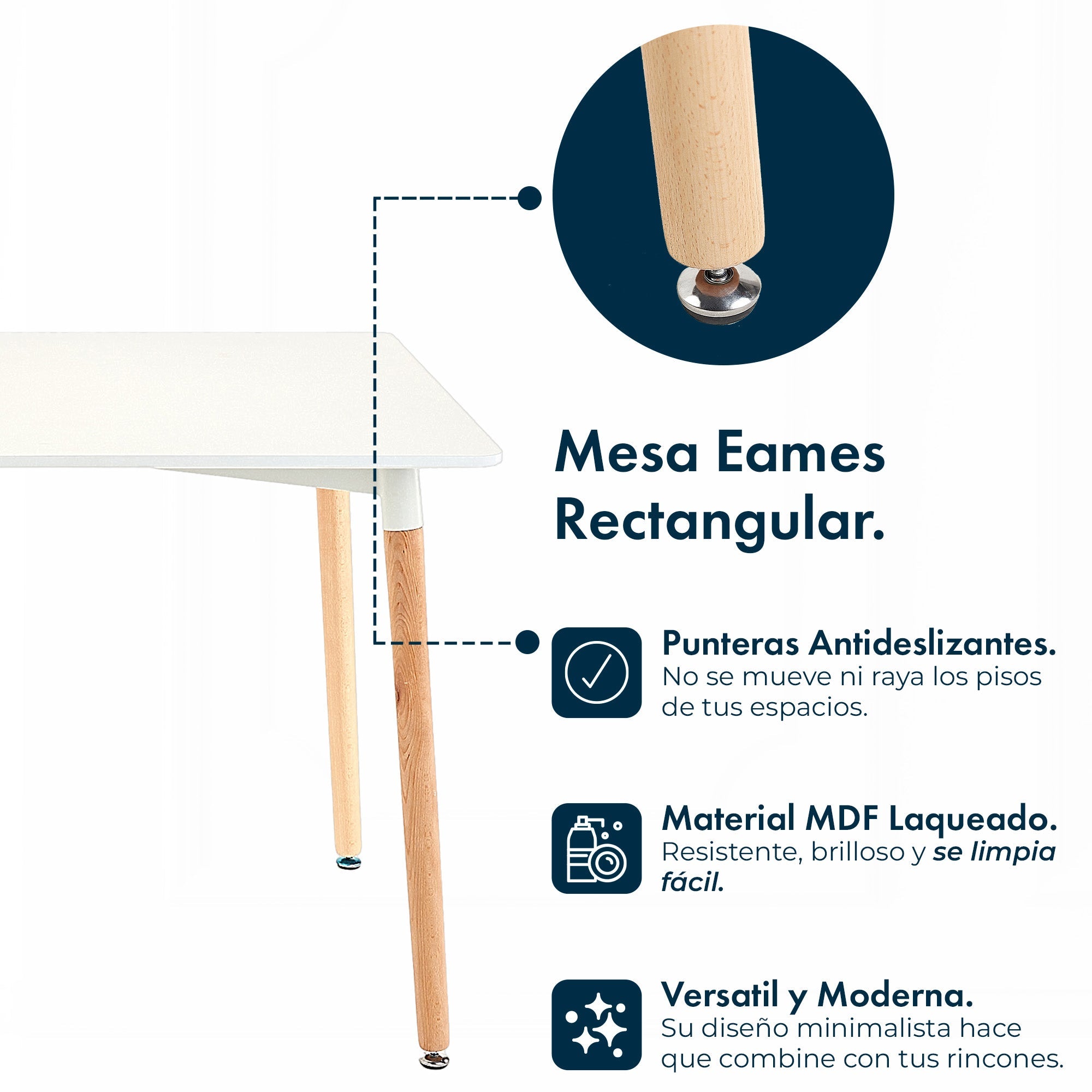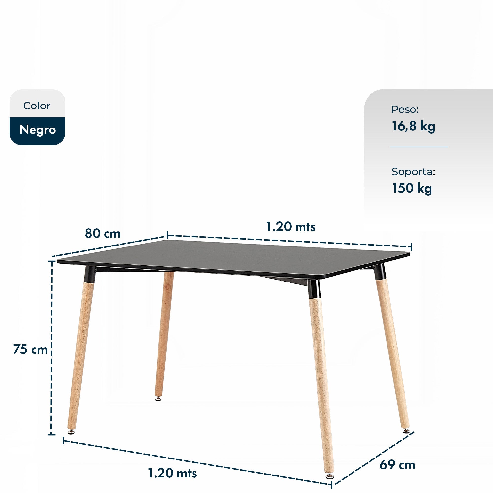 Diseño nórdico y funcionalidad en perfecta armonía. Con tapa de MDF laqueado blanco y patas de madera con punteras antideslizantes, esta mesa rectangular de 120x80 cm aporta estilo y practicidad a tus espacios interiores.