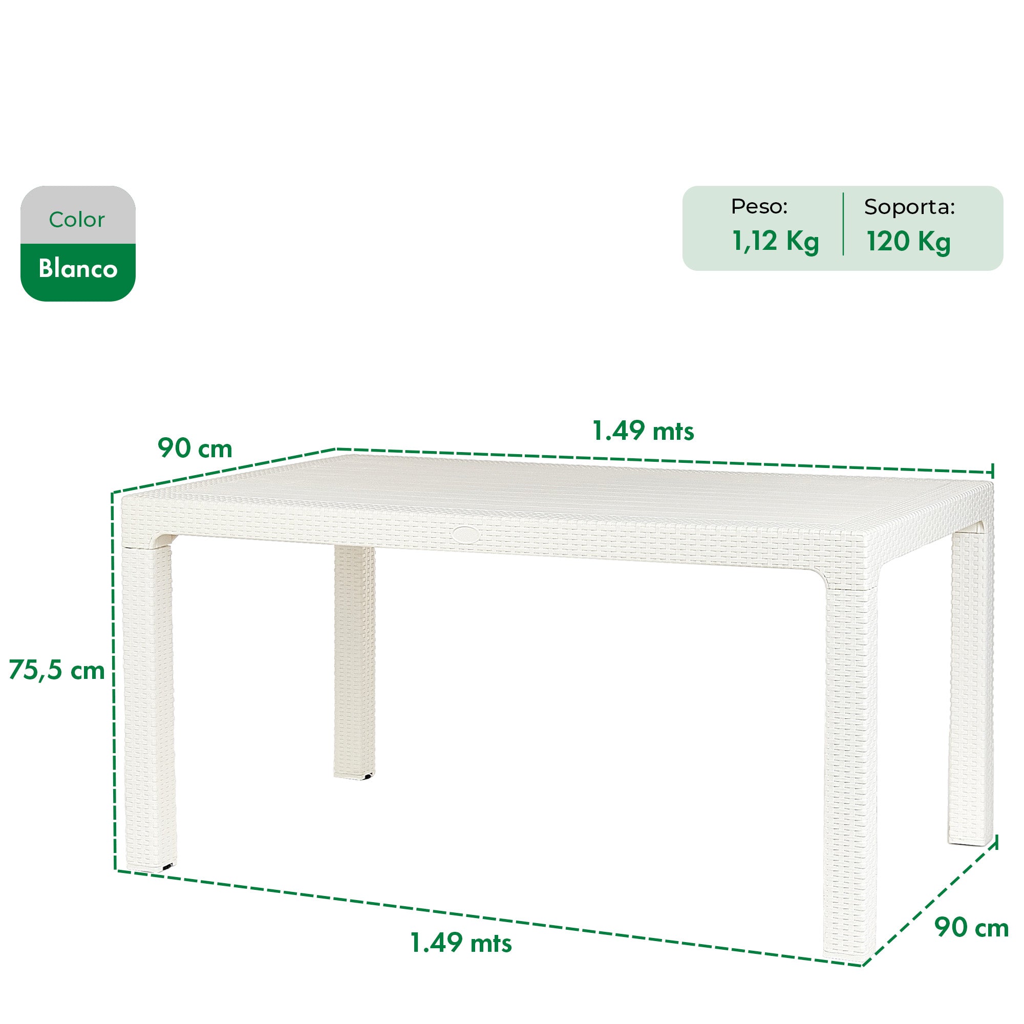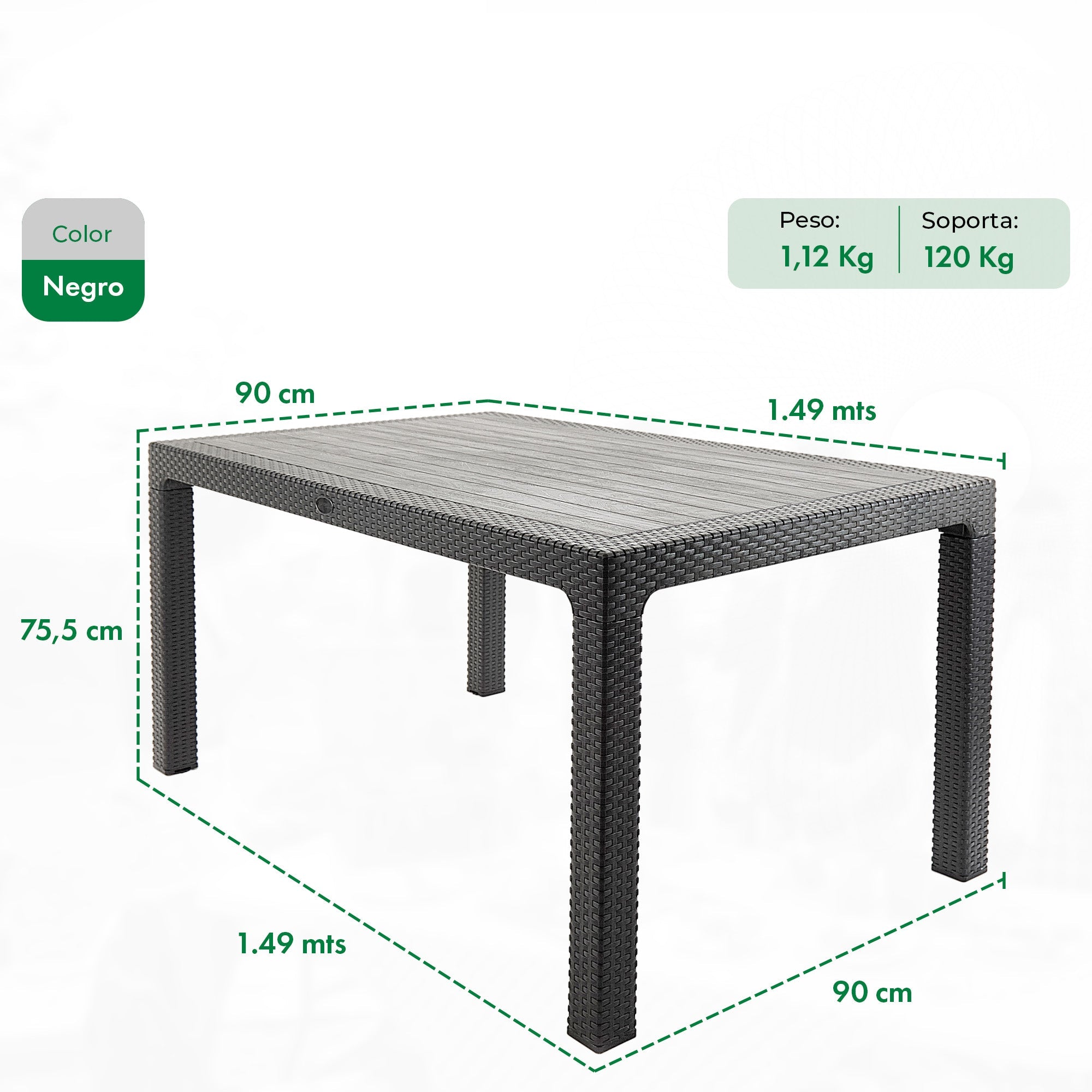 Mesa Rattan Niza 150x90cm Mesa Rattan Niza 150x90cm Product form Tabletop color Free pickup in our shop(s) Black Blanco Grafito Free pickup in our shop(s) Recomendaciones