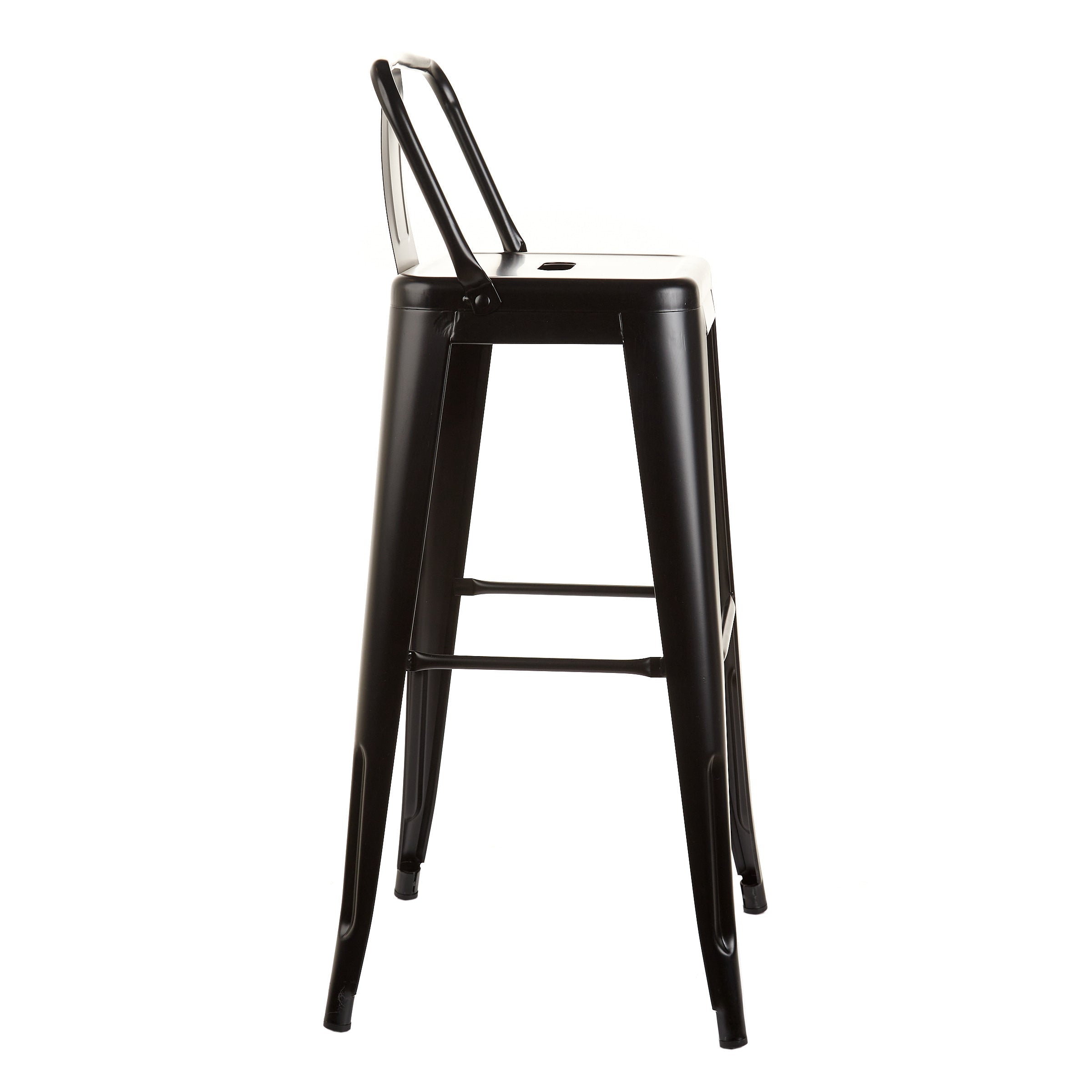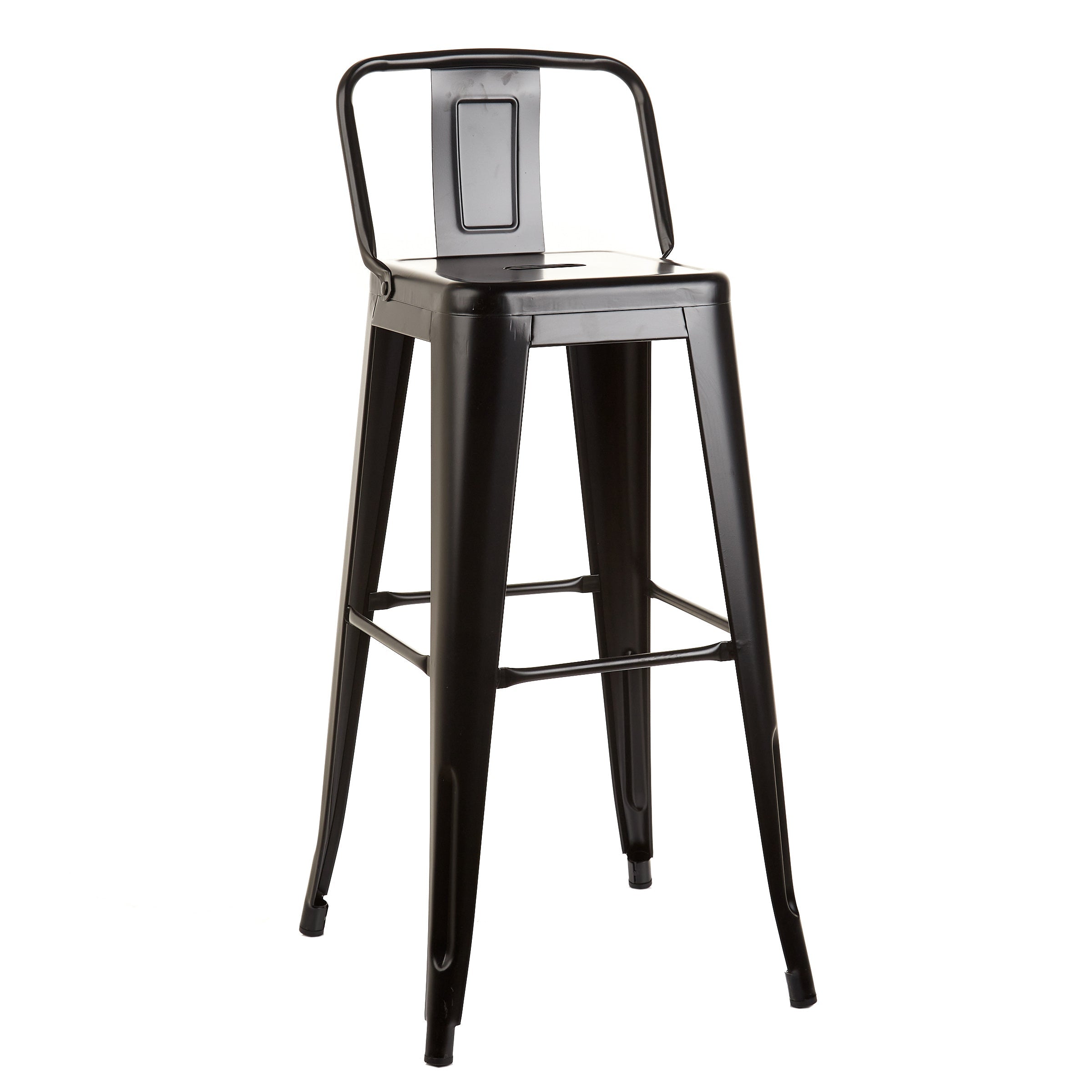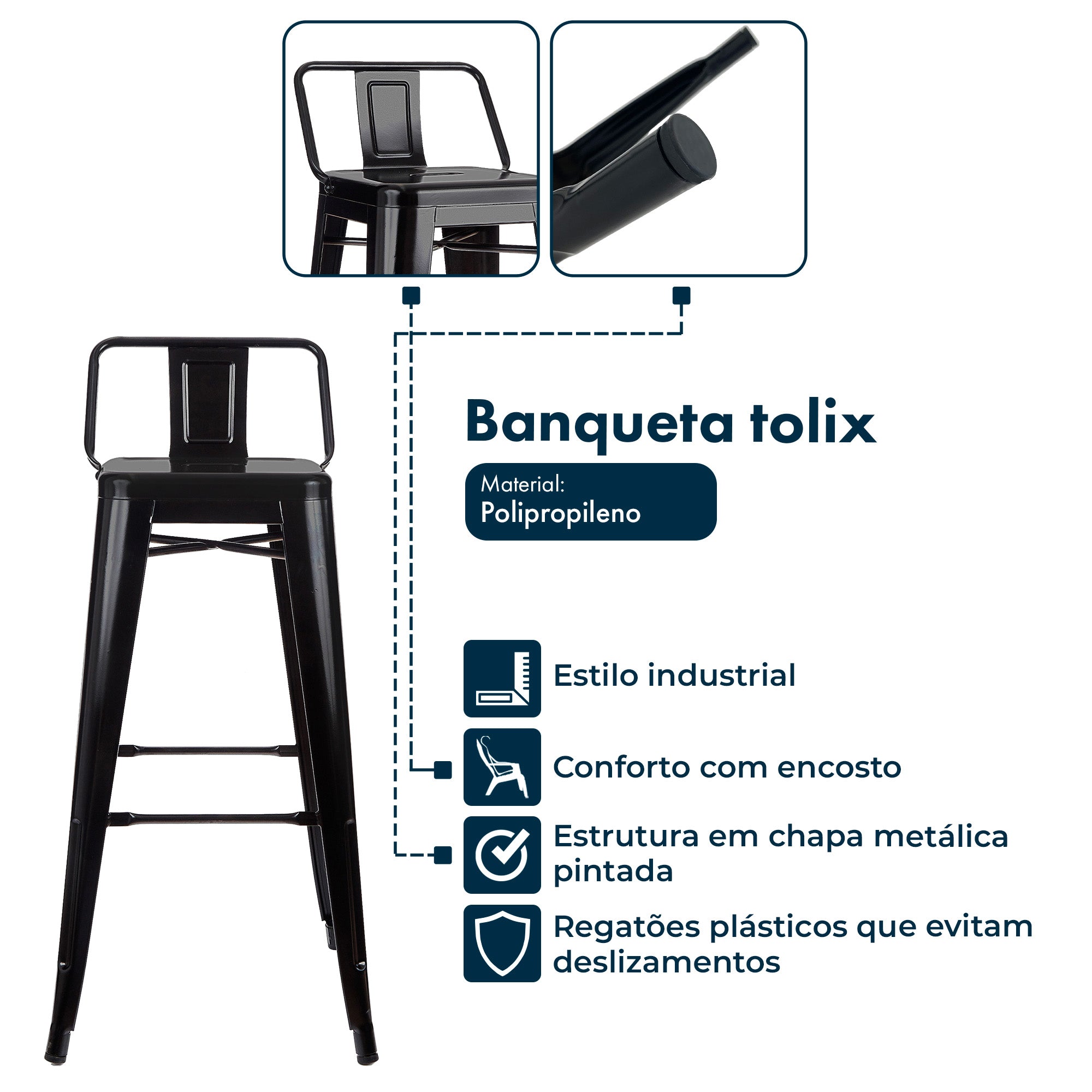 Estilo industrial con carácter. Banquetas de acero con respaldo, resistentes y cómodas, ideales para barras o rincones con personalidad.