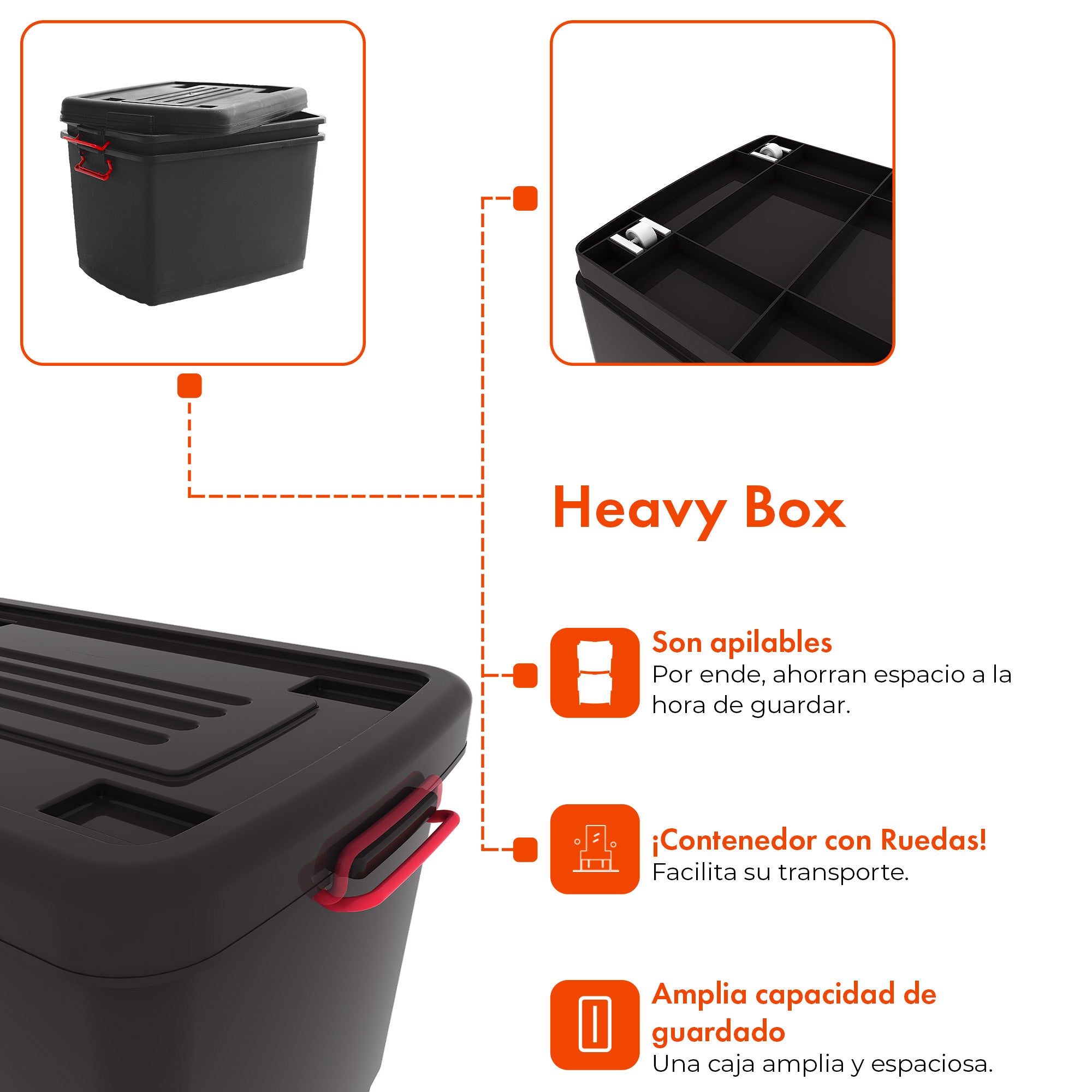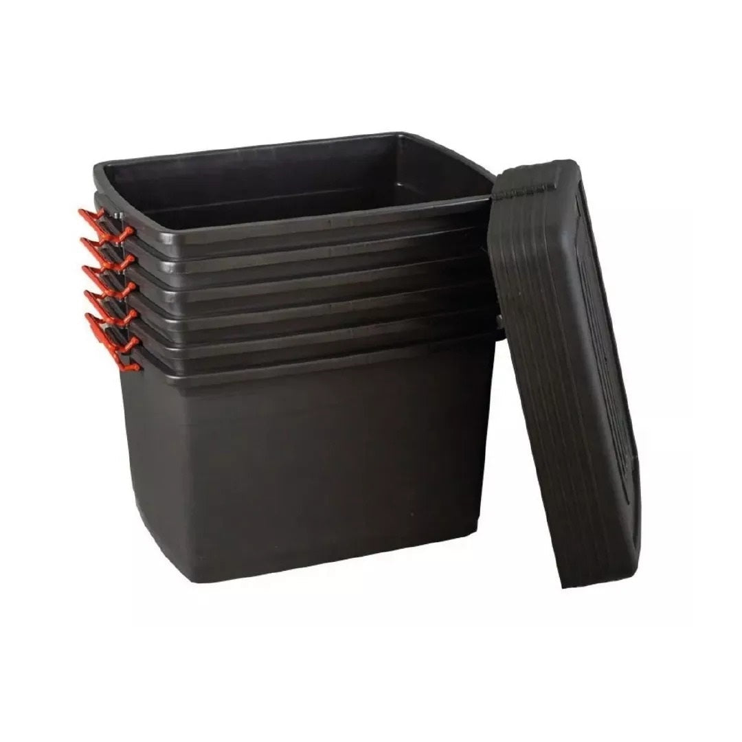 Solución práctica y resistente para el almacenamiento en el hogar, el garaje o espacios de trabajo. Cada contenedor ofrece 95 litros de capacidad y está fabricado en plástico reforzado, ideal para organizar, transportar o guardar objetos de gran volumen. Incluye ruedas, tapas seguras y apilables para optimizar el espacio.