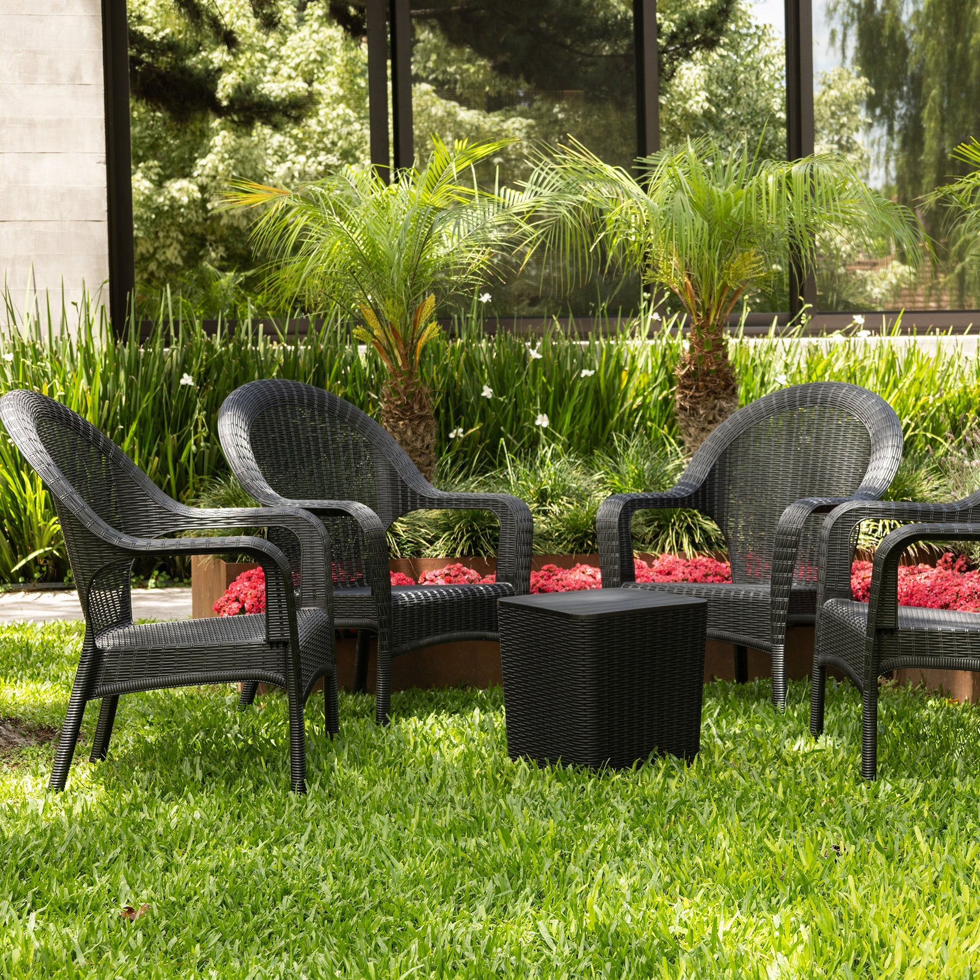 Diseño y funcionalidad para disfrutar al aire libre. Los sillones Qatar, de rattan sintético resistente, combinan confort y estilo en una estructura liviana y duradera. La mesa Capri, con tapa superior, ofrece un práctico espacio de guardado, ideal para mantener el orden con un toque decorativo. Perfecto para patios, galerías o terrazas.