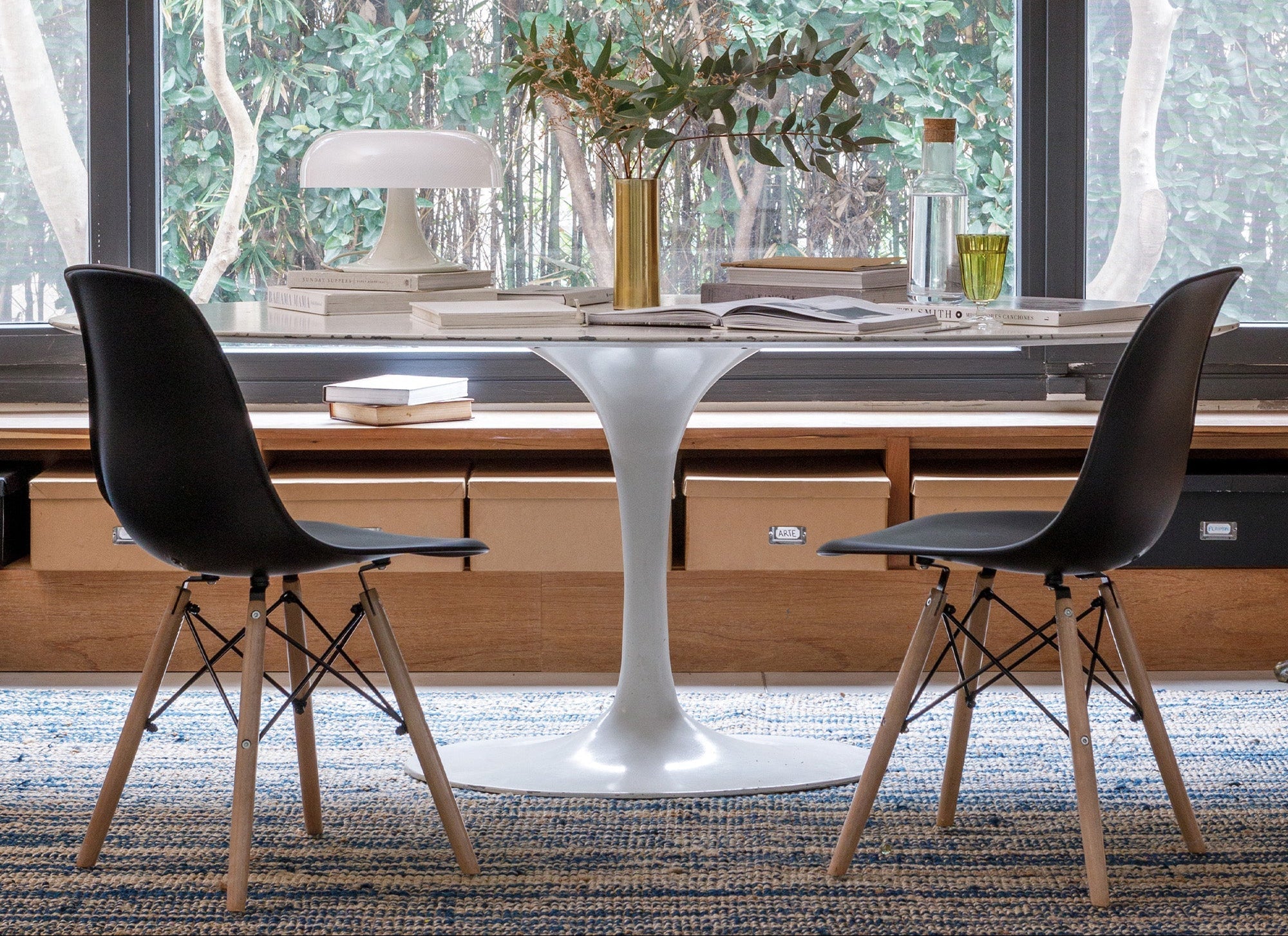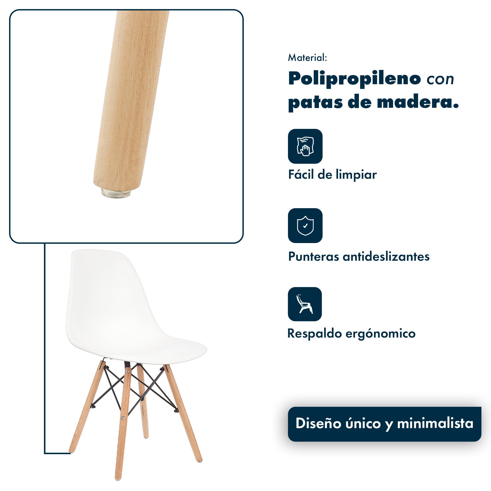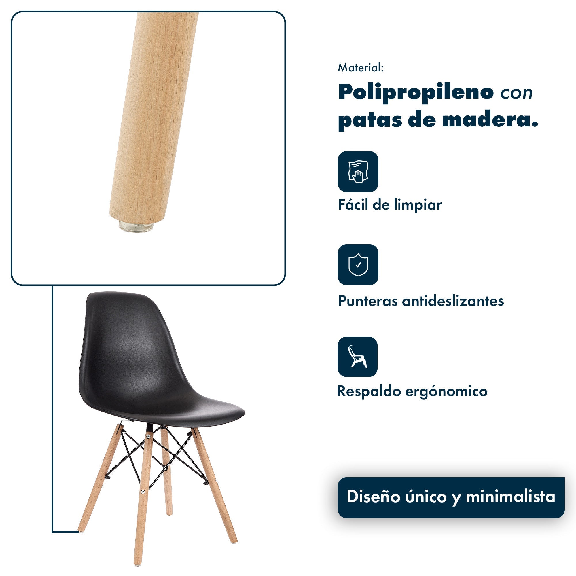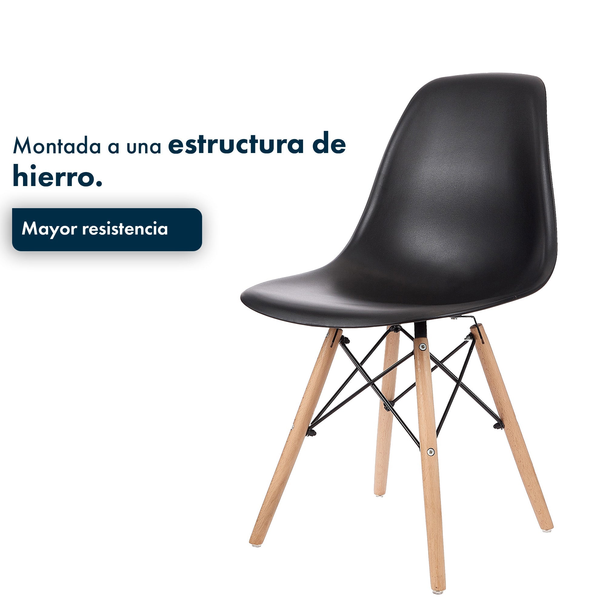 La silla Eames combina líneas limpias, asiento ergonómico y patas de madera con varillas metálicas, dando como resultado una pieza funcional y con mucho estilo. Ideal para comedores, escritorios o espacios creativos, aporta un toque moderno y atemporal a cualquier ambiente.