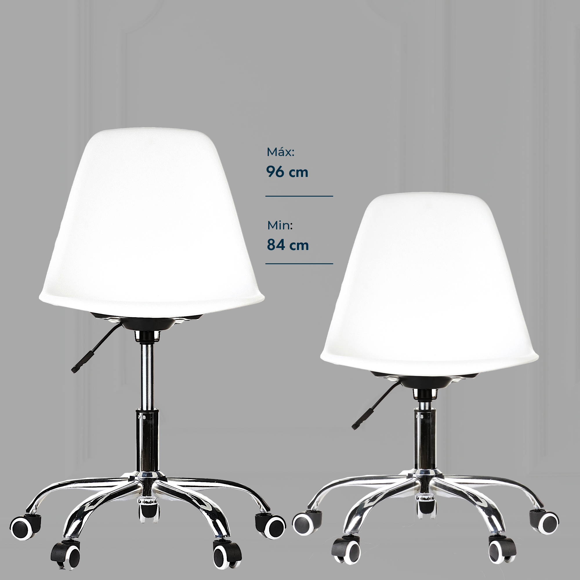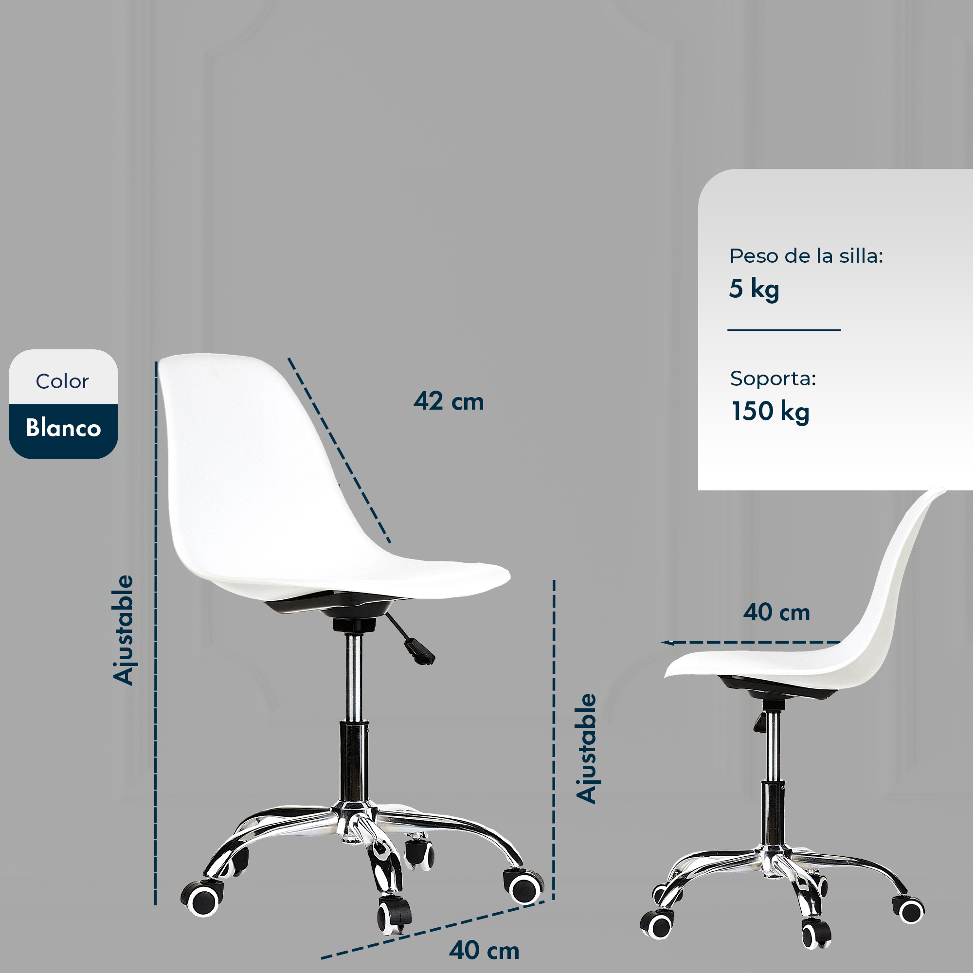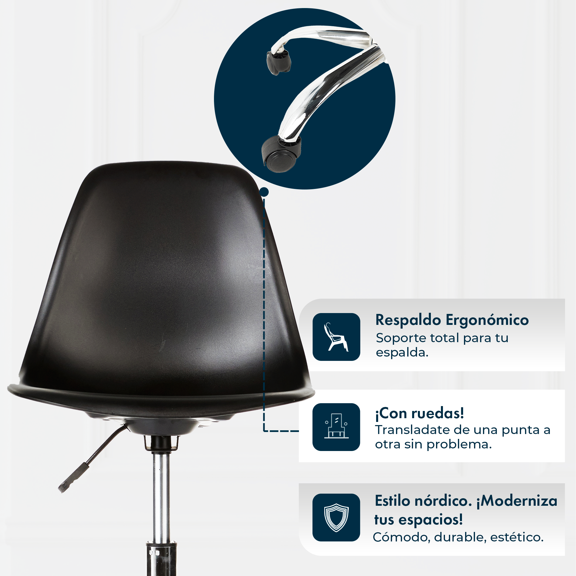 Estilo y confort en una sola pieza. Inspirada en el diseño clásico de Eames, esta silla de oficina combina líneas elegantes con funcionalidad moderna: base giratoria y ruedas que facilitan el movimiento. Ideal para espacios de trabajo que buscan un equilibrio entre diseño y ergonomía.