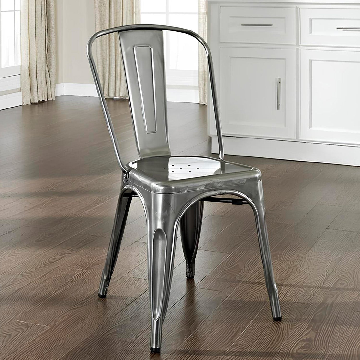 Un clásico del diseño industrial que combina resistencia y estilo atemporal. Fabricada en acero y terminada con un delicado laqueado, esta silla ofrece solidez y un acabado elegante que realza cualquier espacio, ya sea en interiores o exteriores techados. Su diseño versátil la convierte en la elección ideal para comedores, cocinas, bares o terrazas, aportando un toque moderno y sofisticado.